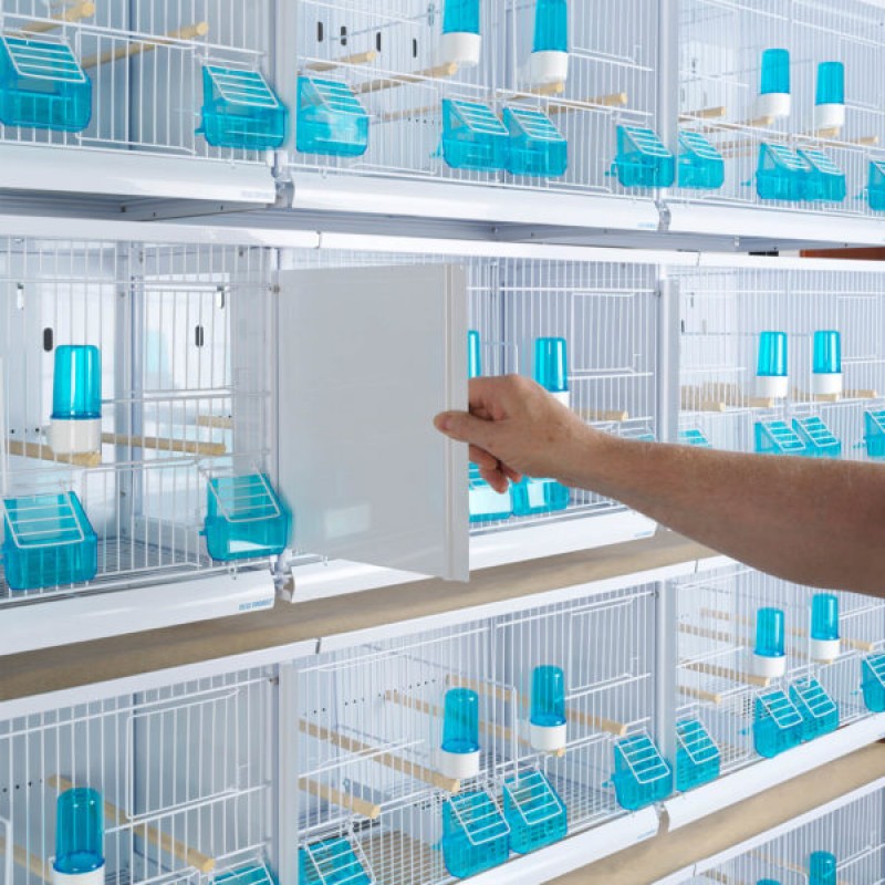 Τα κλουβιά είναι πλήρης με στήριγμα τοίχου, χάρτινα ρολά, μονά πλέγματα σχάρας, ταΐστρες, ποτίστρες και ξύλινες πατήθρες.
