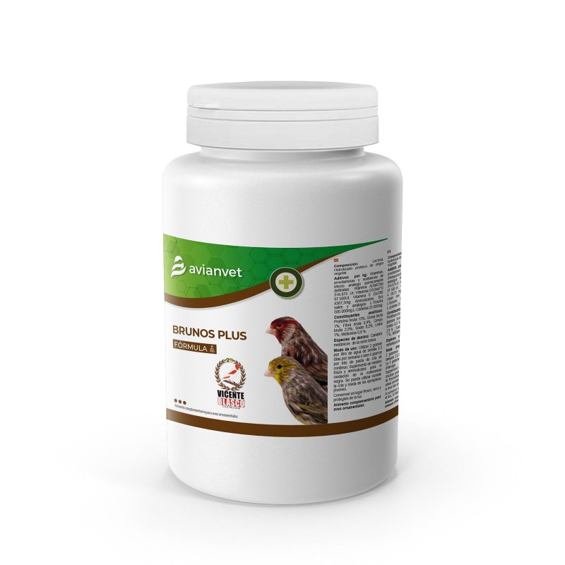 Avianvet Brunos Plus – Συμπλήρωμα Πτερώματος & Μελανίνης για Καφέ Καναρίνια (Vicente Blasco Formula) – 125 g